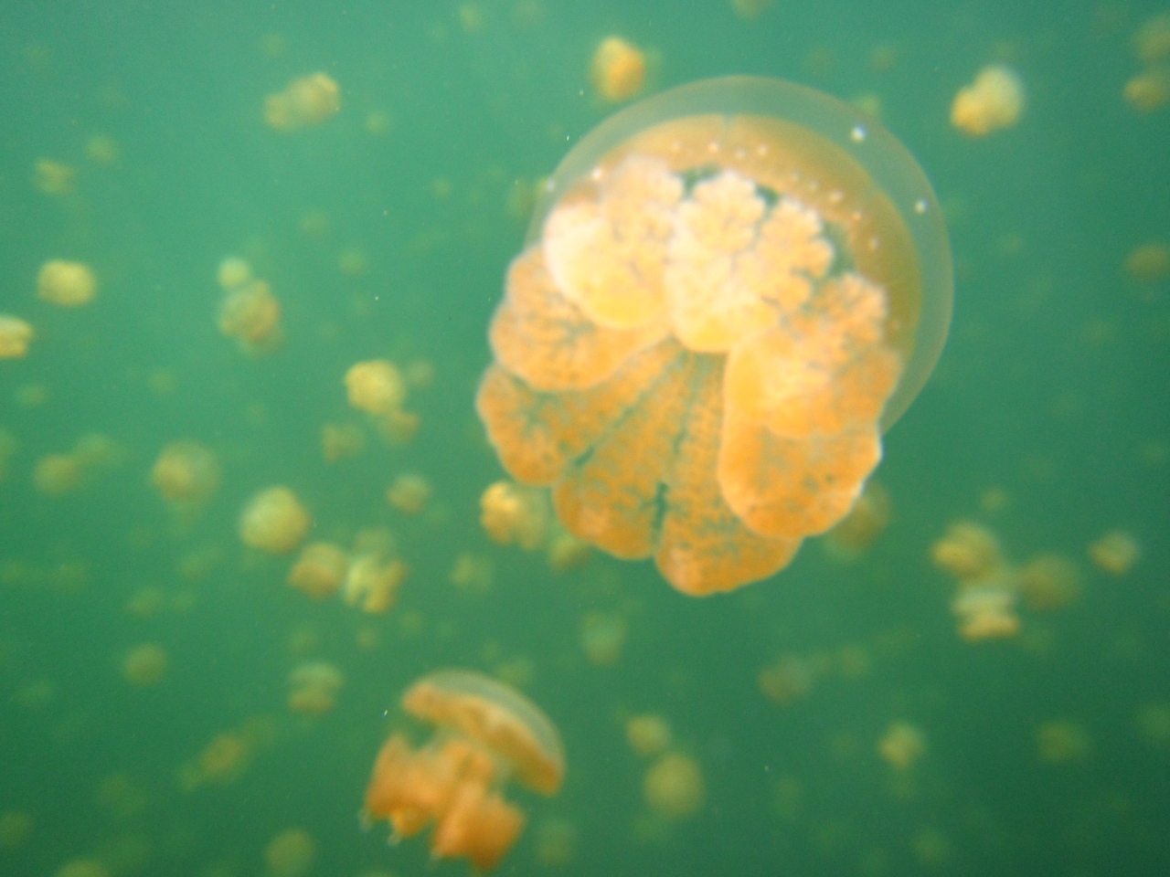 足が6本の子、8本の子、10本の子と・・かわいい!!潜って下からクラゲを見上げたかったけど、我慢我慢。上からでも十分に愛でることができました!