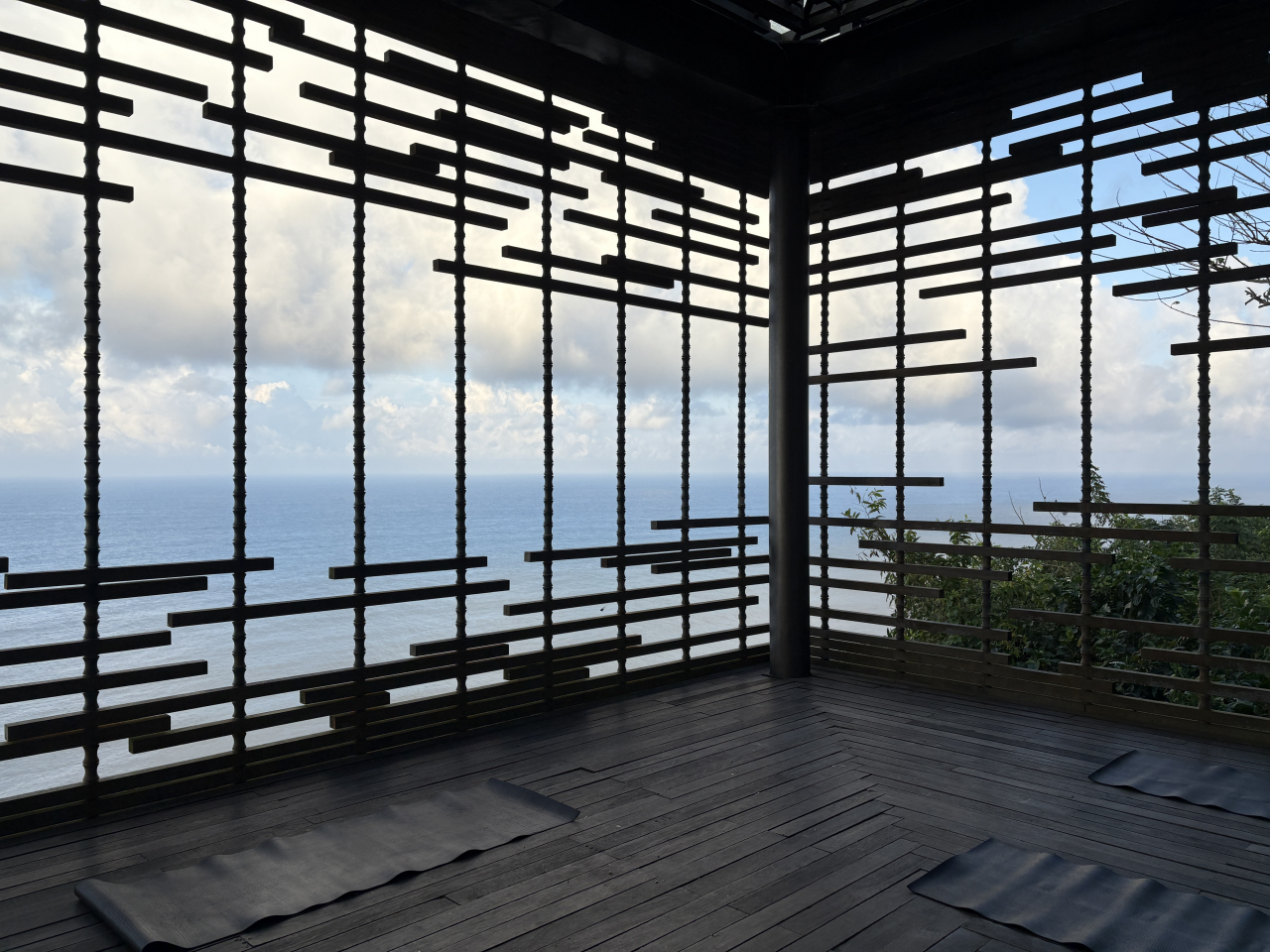 早朝ヨガは無料で1時間程度、海に面したカバナで行います。