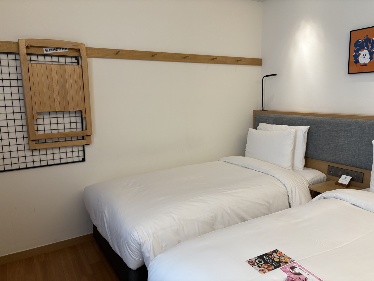 その分部屋は狭いのですが、ホテルも新しく白と黒とグリーンの落ち着いたインテリアです。