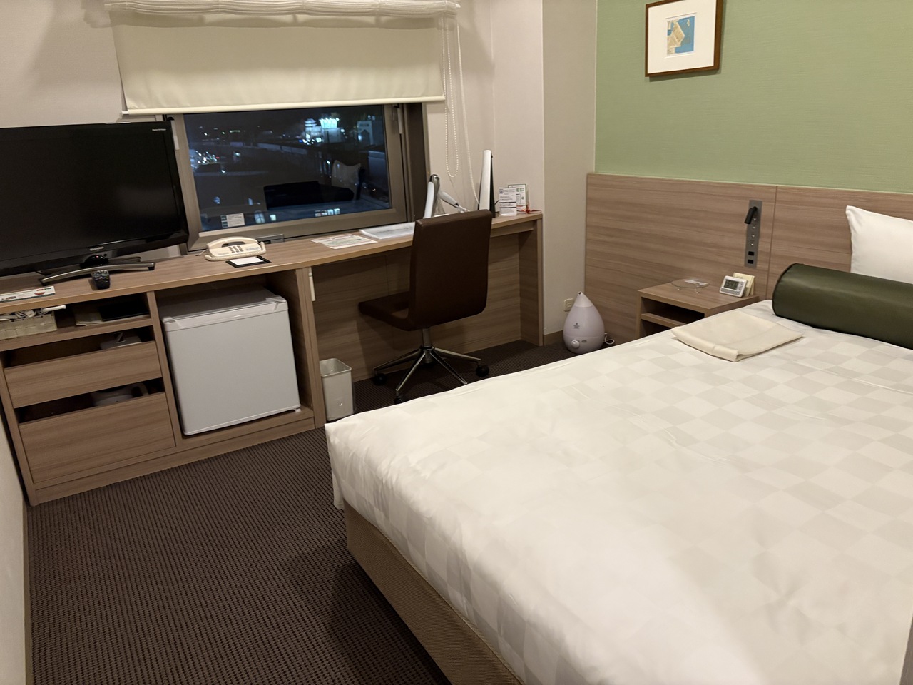 部屋は狭くスーツケースを開くのが、やや大変です。