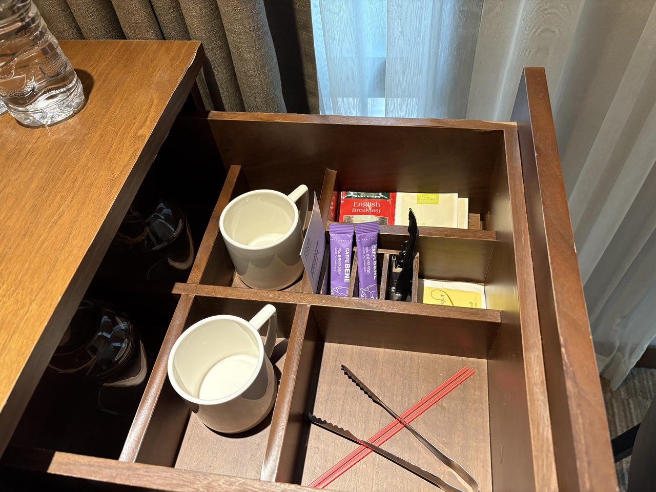 宿泊者全員が使えるティーラウンジではコーヒーや紅茶とクッキーが頂けます。カクテルタイムの利用が出来るプレミアムラウンジはマリオットボンヴォイのプラチナでは利用出来ず有料となりますが、B1のサウナと大浴場は無料で利用出来ます。クレンジングや基礎化粧品 ミネラルウォーター タオルの用意があります。フロントでキーを交換していただき利用します。