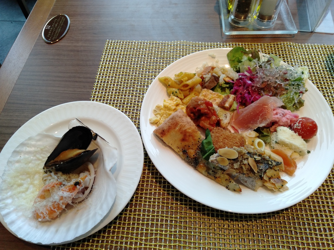 31階のロビーフロアにある、全面ガラス張りで名古屋市街を一望できるレストラン天空でのランチブッフェです。平日の11時半過ぎにも関わらず、ほぼ満席でした。行ったときには地中海フェアをしていてライブキッチンではホタテの殻に乗せたシーフードにパルメザンを削り炙ってました。品数も豊富で、本格的なジェラートも美味しかったです。