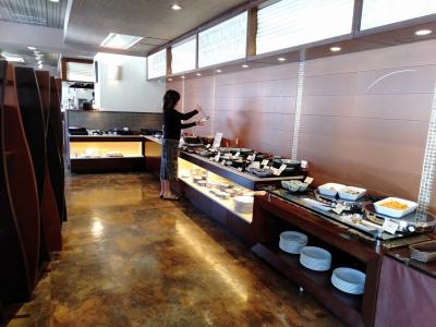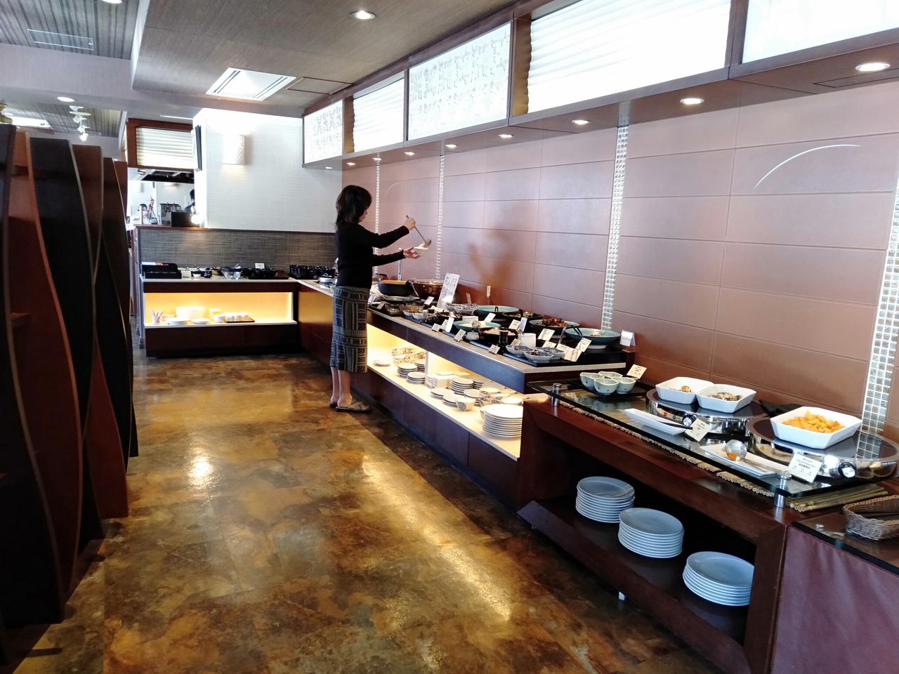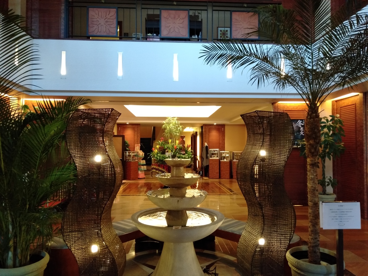 ハワイアンなリゾートをイメージしたホテル。館内着も女性はムームーの様な感じです。2階にダイニング、最上階に温泉があり富士山を眺めることができます。夕食、朝食共にビュッフェですが、夕食ではオードブル、メインも付いてきました。和洋中、品数豊富でご当地料理もありました。