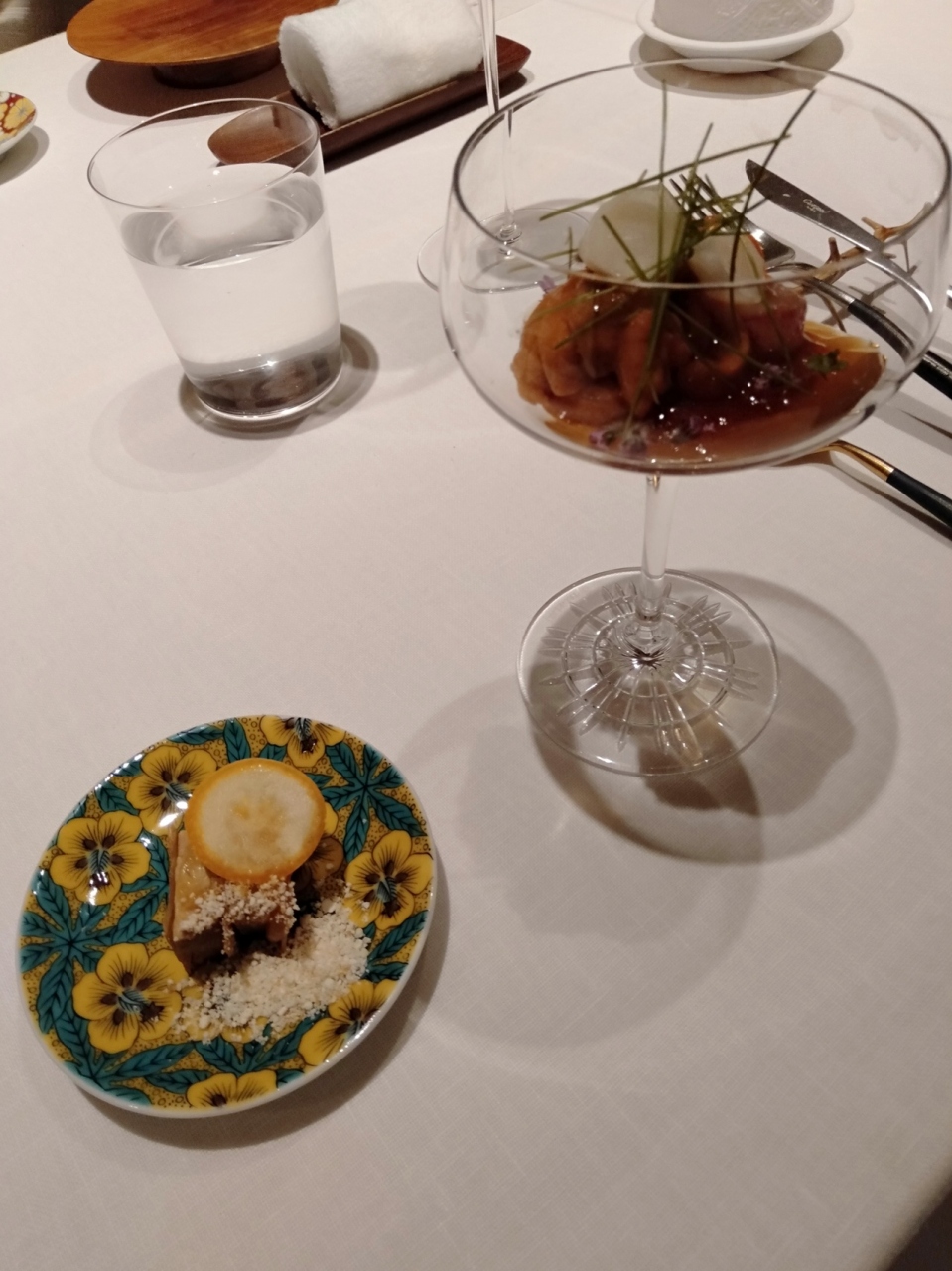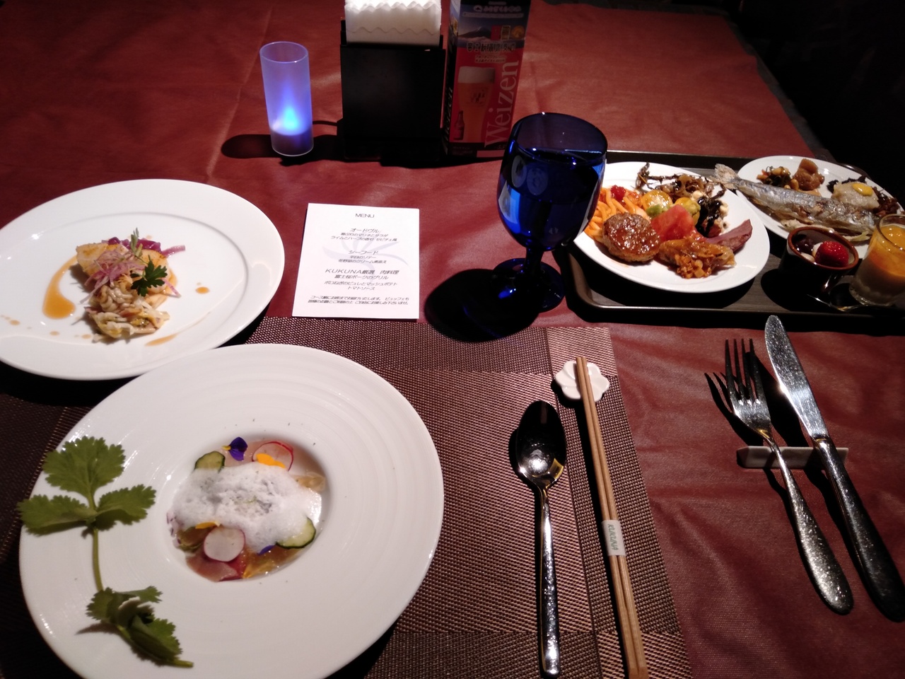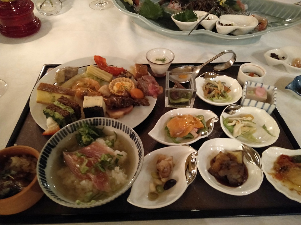 レストランが複雑な迷路になっていてそれぞれ個室です。ディナーではワインのペアリングをオーダー。ひらまつオリジナルエチケットのワインも頂きました。アミューズの後、料理に使われる美し国の海の幸、山の幸を見せてくださいます。最後のデザートワインでは、女性にはポルトワイン、男性にはブランデーとセンスも良かったです。朝食も食べ切れないくらいの量が出るので、食べられなかったパンはジャムと一緒に持ち帰りにしてくれます。
