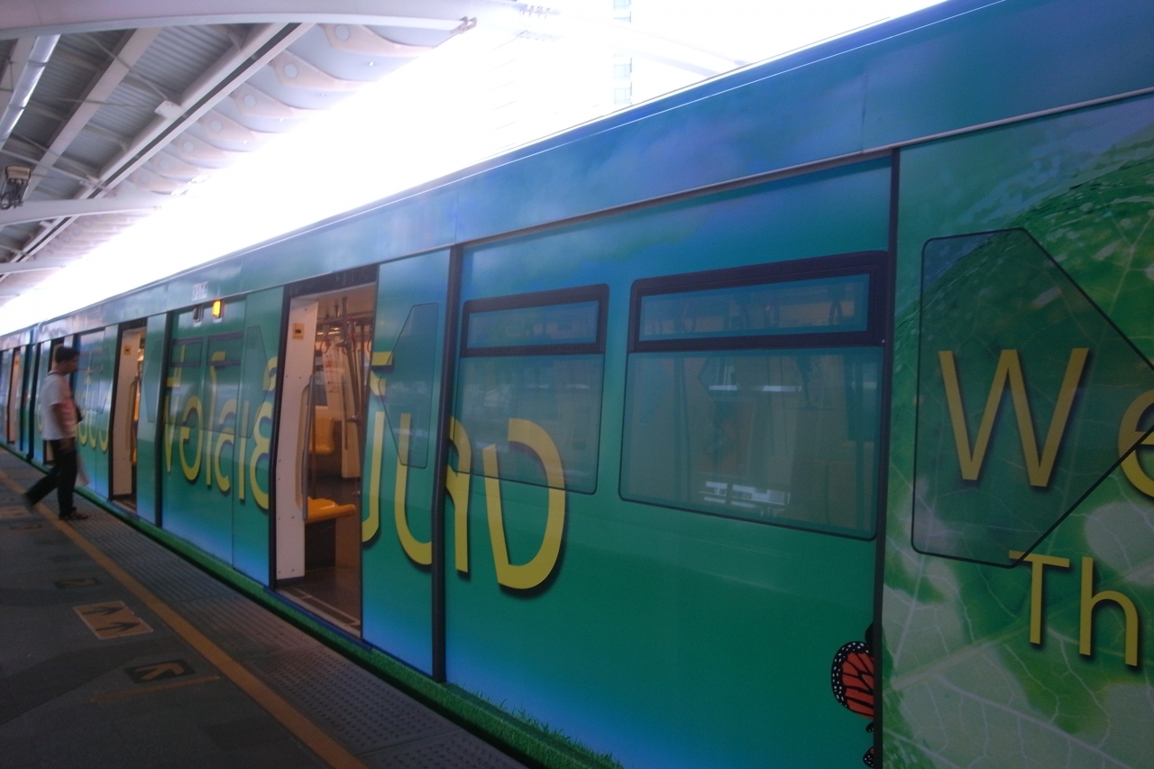 列車の中は寒いくらいクーラーが効いていて快適です。外が暑いので涼むのにもいいです。乗り降りも簡単で切符も自販機で買えます。小銭を持っていない時は窓口で両替もしてもらえました。渋滞もしないので便利でした。