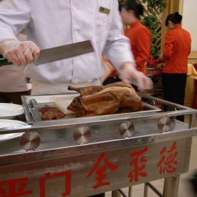 安い北京ダックは油っぽいので苦手だけど本場は美味しいかも、と期待して有名なこのお店へ行ってみました。日本では皮だけ食べる所が多いみたいですが本場では身も一緒に食べるようです。今まで食べたものよりあっさりしてましたが、たくさんは食べられず残してしまいました。