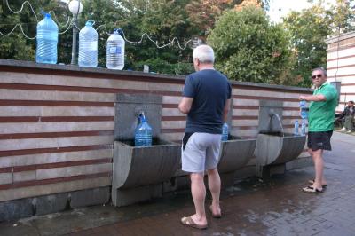今は閉館されている共同浴場の近くにありました。大きめのペットボトルをたくさん持参した人たちが温泉水を汲んでいました。ブルガリア市民の生活がちょっと垣間見れる場所だと思います。飲んでみましたが硫黄のにおいがきつく熱かったです。