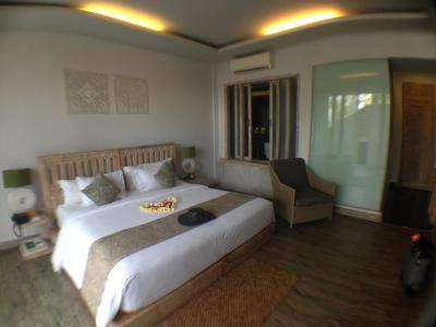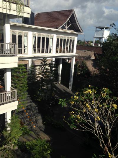 明るいモンキーフォレスト通りにあるので、夜バリ舞踊を見た帰りも安心して歩けました。目の前にコンビニ、隣は有名なカフェ・ワヤンがあり、王宮や市場にも歩いて行けるのでとても便利です。アフタヌーンティでは地元のお菓子と飲み物が毎日いただけ、朝食も選べるので飽きません。とにかくスタッフの笑顔に癒されました。