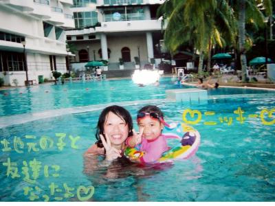 ホテルのプールで地元の子ども達と遊びました☆会話は英語でちょっと不便だ...