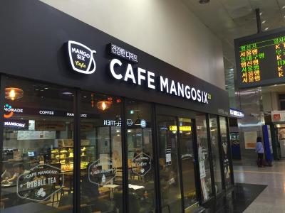 釜山駅前の東横インに宿泊したので毎晩釜山駅構内のカフェを回っていましたけども、ここはマンゴーだけではなくふつうのコーヒーなんかもあるお店です。でもやっぱりマンゴーアイスが食べました。韓国では今マンゴーブームのようで、あちこちでマンゴー味のデザートがありました。