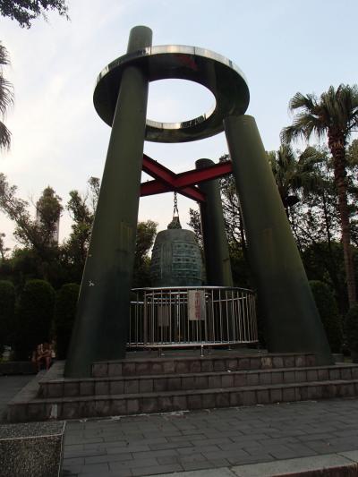 台北市内の二二八和平公園内にある鐘です。お寺の鐘みたいな形の鐘が独立したオブジェとして展示されています。