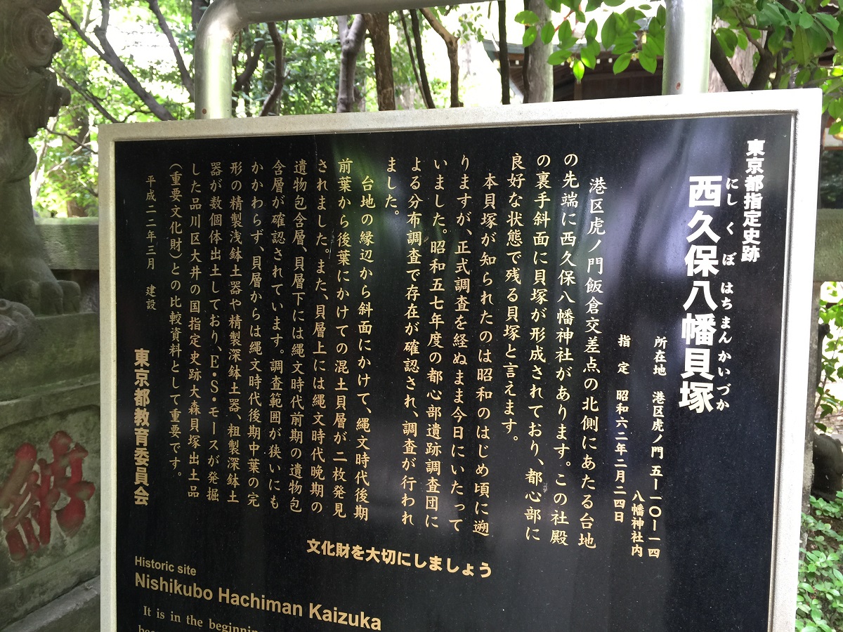 飯倉の交差点を下がったところにある西久保八幡神社にある貝塚です。