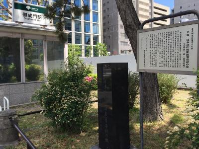 芝公園はかなり広く、いくつかの区画に分かれていますが、プリンスホテルの区画のさらに北側の遊具などがある一般の公園区画の通りを挟んだ向かい側に建っている石碑です。