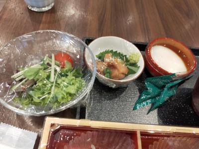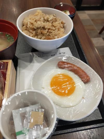 朝食はバイキング方式で,和食のベースにいろいろなものを小鉢で摂って食べました。調理の方におすすめは?と聞くと,りゅうきゅうにとろろをかけるとおいしいですとのことでした。