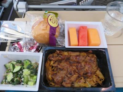 機内食もおいしく食べられるレベルのものが続き(最後に出たキュウリを除く)