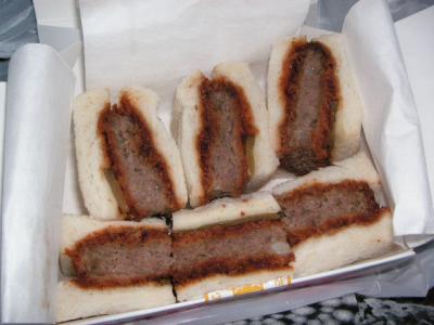 ハンバーグサンド、とありますが、ハンバーグにパン粉をつけて揚げた、メンチカツサンドなんです。