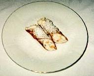 筒に巻きつけて揚げて、筒があった場所に、甘いリコッタチーズを詰めて食べます。