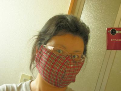 お洋服が作れそうに丈夫な綿の布で立体的に作られたマスク!