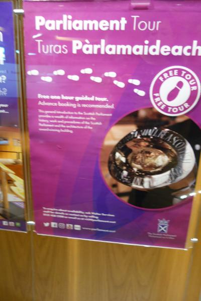 ハリー・ポッターが出てきてもおかしくない、魔法や幽霊や伝説が今も生きているような古くて雰囲気に満ち満ちたエディンバラの旧市街の中に、突然変異みたいなモダン建築が、にょきっ!と立っています。スコットランド国会議事堂です。向かい側には英国女王が避暑などで訪れるホリールード宮殿があり、旧市街のメイン通りハイ・ストリート沿いに延々おとぎ話みたいな建物が並んでいる…中に、突然立っている、とんでもなく個性的なモダン建築は、ちょっと衝撃です。…という建築の観点からも注目株ですが、観光客にとっては、入場無料で誰でも入れるので(入場時に荷物検査があります)、歩き疲れて休憩したいときにお勧めです(怒られそうですが…)。中には無料のロッカーがあるので、買い物しすぎて重たい荷物をとりあえず預け、カフェがあるので座って休憩し、綺麗なトイレもあります。ショップがまた楽しくて、議会グッズも少しはありますが、大半はスコットランド土産で、スコッチ・ウィスキーや、ハリスツイードや、昔、女性に選挙権がなかったころの「VOtes for Women」のグッズまであり、品ぞろえが実に秀逸です。見学は、勝手に見て回れる場所もありますが、その場で申し込んで、見学コースというのもありました。1時間と言われて、面倒くさくて参加しなかったので、内容はわかりません。勝手に見られる場所にも、歴史のパネルや、スコットランドの偉人の名前の会議室などを外から見たり、ある程度はいろいろ見られます。