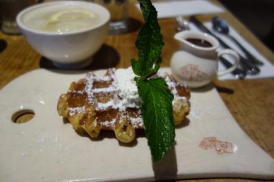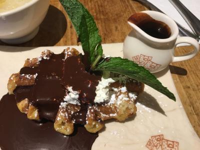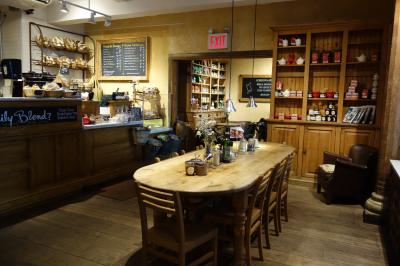 雪が積もる冬の寒い朝、セントラル・パークの散策後に温かい場所で朝食を取りたくて、パークを出てすぐの、こちらの店に駆け込みました。店内はアッパー・ウェスト・マダムたちがゆったりと社交のティータイムを楽しんでいて、カントリー・アンティーク風のインテリアも上品で、とても心地よい雰囲気。チョコレート・ソースをかけるベルギー・ワッフルと、オーソドックスなカフェオレ・ボウルで供されるホットドリンクで朝食にしました。ワッフルは美味しかったですが、お洒落重視でまな板みたいな平らな食器に載って出てきたので、大量のチョコレートソースをかけると、ソースがだら~っとテーブルにこぼれました。カフェオレボウルにたっぷり注がれたハニーレモンジンジャードリンクは身体が温まりました。セントラル・パーク内にもル・パンのオープンカフェや売店がありますが、寒い時期はやはり室内で温まりたいので、72丁目のストロベリー・フィールズのところの出口を出て、ダコタ・ハウスを右目に見ながら5分も歩かずに着くこの場所はありがたかったです。