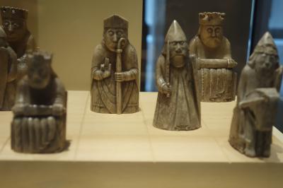 エディンバラの旧市街の方にある博物館で、何が展示されているか?というと、「何でも!」おそろしく広い分野にわたる、しかも大変レベルの高い展示物ばかりで、「無料だから」と軽い気持ちで入って、見るべきものばかりで気持ちが焦って目が回りそうになりました。たとえば「クローン羊のドリー」。聞いたことはあるけれど、実物を見ると悲しいような、色々な思いが呼び起こされます。あるいは「ルイス島のチェス」。ロンドンの大英博物館の人気の展示物ですが、発見されたのはスコットランドのルイス島なので、一部がこの博物館に展示されています。これは、百聞は一見に如かずで、是非実物を見て、そのあまりにもユニークな造形を体感していただきたいです。建物自体も素晴らしく、明るく美しいグランド・ギャラリーは、どこで写真を撮っても絵になります(館内写真撮影可です)。恐竜の巨大な骨格や動物のはく製コーナーは、お子さんに。ヴィヴィアン・ウエストウッドなどの現代デザイナーの作品が並ぶファッションの展示室や、何千年前から現代に至る、スコットランドの歴史、世界の文明の色々、特にケルトやピクト文明ものは実に素晴らしく、心動かされます。他にも古い飛行機や車、宇宙関連から、スコッチウィスキーの醸造過程の色々まで、実に雑多な、それでいてとても深くて充実した展示に、「これが無料なんて!」と、別の意味でも感動します。ショップも大変楽しく、時間を取ってチェックしたいです。私は利用しなかったけれど、カフェやレストランもあり、屋上?の展望台の眺めも良かったとのこと(後悔)。エディンバラに行かれたら、是非、半日ほど余裕を持って遊びに行ってみてほしい、充実のミュージアムでした。