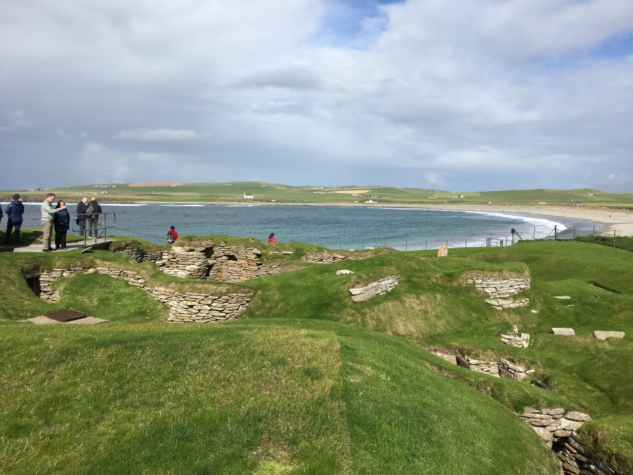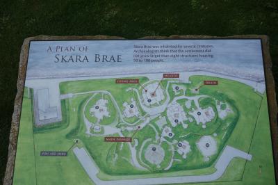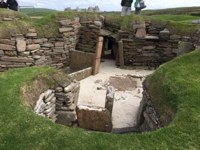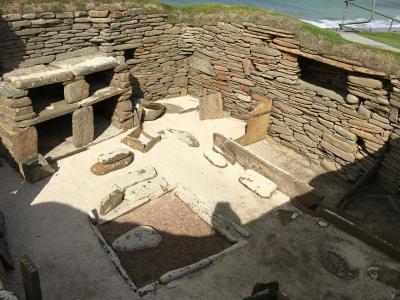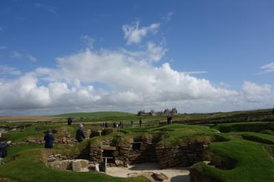 オークニーにはスコットランド本土のジョン・オグローツという小さな街からフェリーが出ていて、約1時間で行けます。メインランド島には空港もあるので、飛行機でも行けます。島に渡った後は、公共交通機関はないと思うので、運転のできない私は、本土のインヴァネスという街からの日帰り現地ツアーに参加しました(John O'Groats Ferry Tour)。バスとフェリーで、ぐるりと島を見学するツアーです。オークニーにはスカラ・ブラエ以外にも巨大な環状列石リング・オブ・ブロドガーや、古代遺跡に後世のバイキングがいたずら書きしたという、二重に貴重な墳墓跡や、古代遺跡の宝庫です。第二次大戦中、ここまで攻めてきたドイツの潜水艦Uボートを防ぐために、英国首相チャーチルが、オークニー諸島の島と島の間の湾に廃船や戦艦などを沈めまくって通路を塞いだ「チャーチル・バリア」が今でも見ることができ、こちらも鳥肌ものです。- 旅行時期