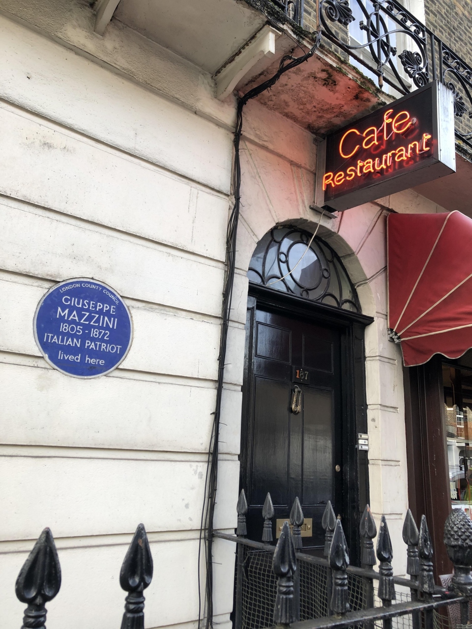 BBCドラマ「シャーロック」(ベネディクト・カンバーバッチ主演)で、シャーロックとジョンが住む221B Baker Street(ベイカー街221B番地)として出てくるアパートの1階にある、アイコン的なお店です。実際のお店はベイカー街ではなく、広いユーストン・ロードから、ガワー・ストリートという通りを北に曲がってすぐの、住所でいうとノース・ガワー・ストリートにあります。過去に何度か写真を撮りに行って、一度だけ、中に入ってお茶を飲んでみましたが、店内は大変狭いところにギュウギュウに席が詰め込まれていて(コロナ後にどうなっているかはわかりませんが)、一番奥の角の席に案内されたら、出るときは、隣のテーブルの人に立ってもらわないと出られないほどの激狭でした。紅茶しか飲んでいないので、味について判断するのも悪いのですが、少なくとも紅茶は、分厚いカップにティーバッグを入れたまま出てきて、全然美味しくなかったです。すごく安かったですが。ただ、地元の人には大人気みたいで、その時も、その後、写真だけ撮りに行ったときも、ひっきりなしに地元っぽい人たちが出入りしていました。