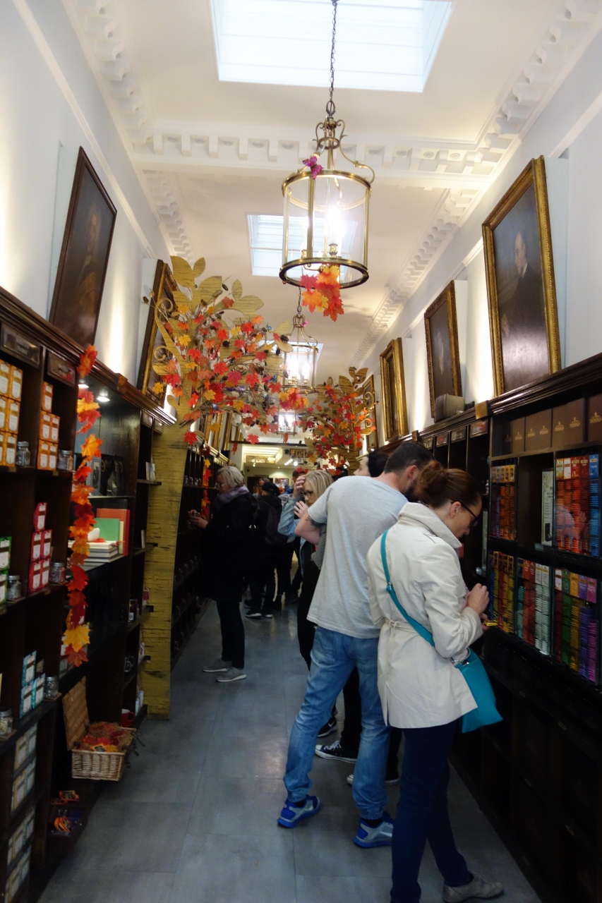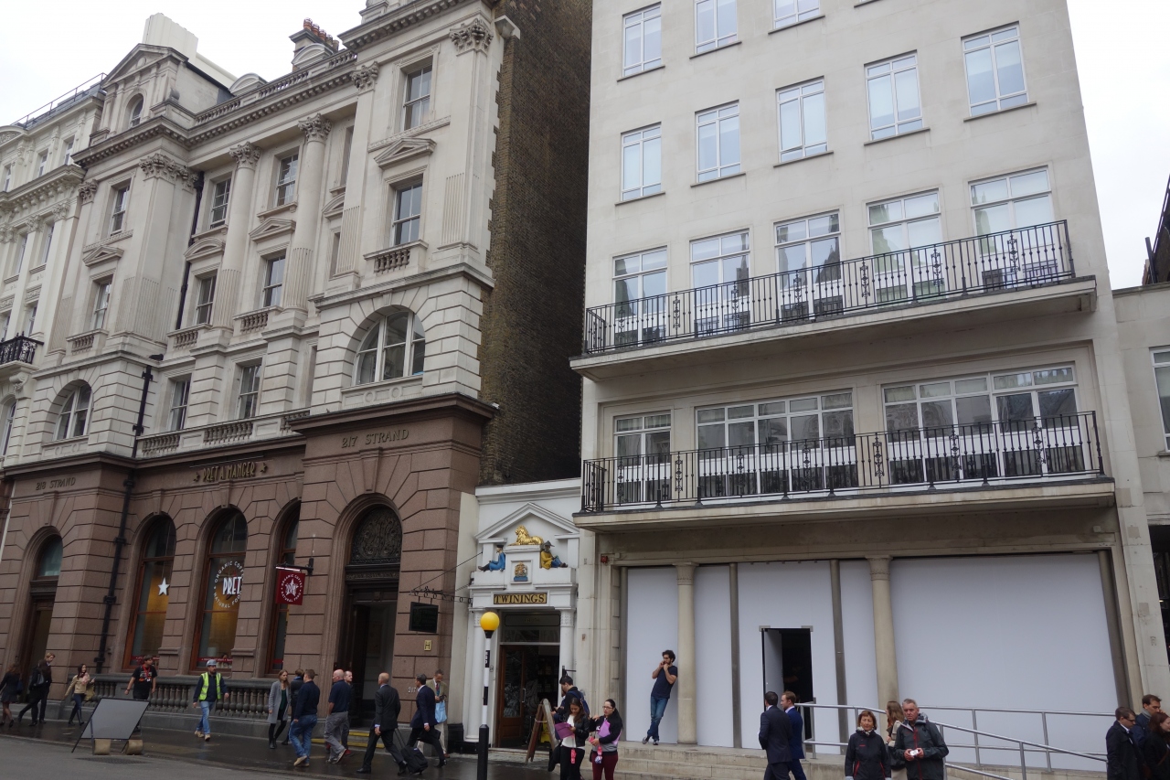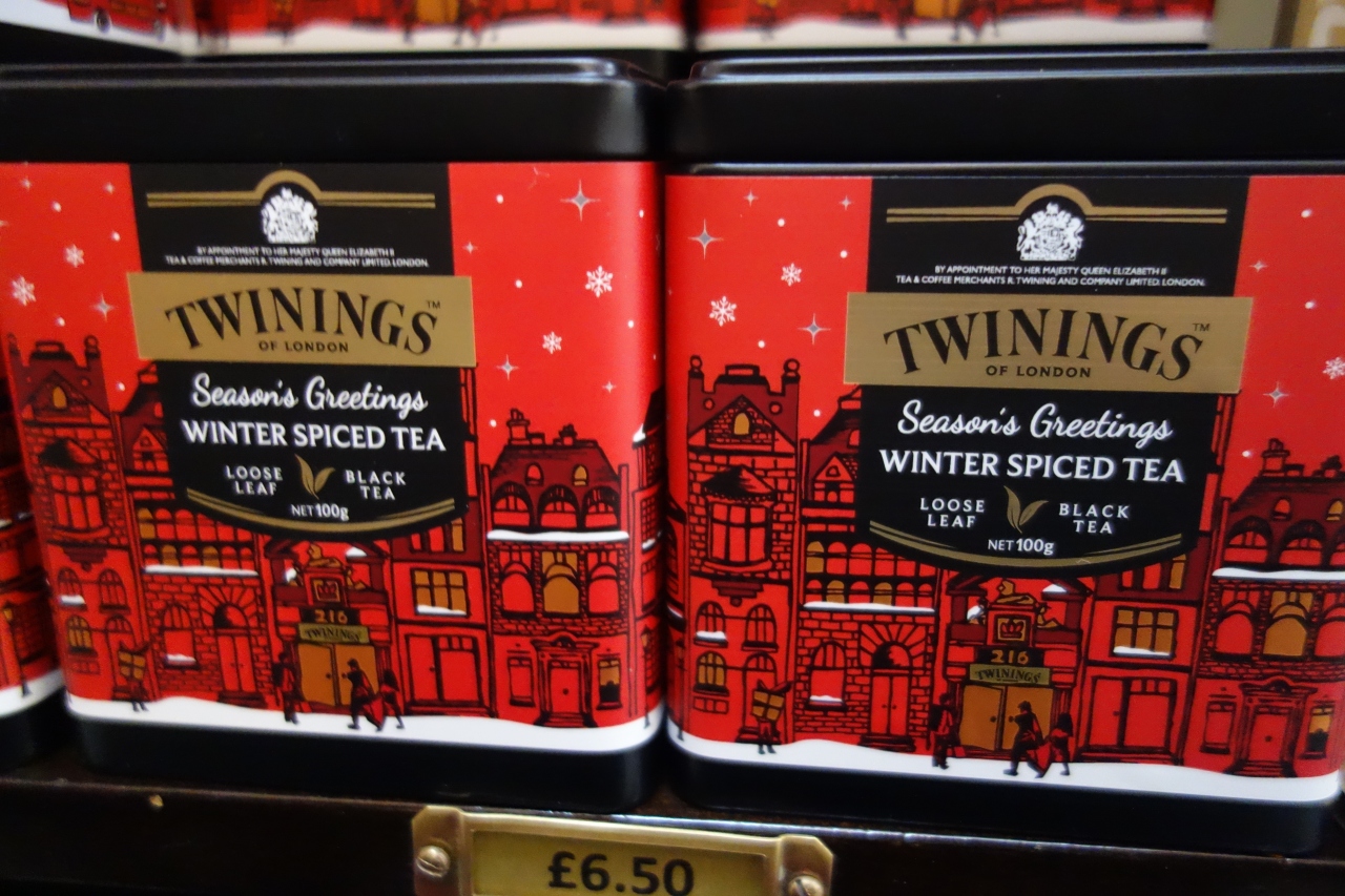 お店は、コヴェント・ガーデンの辺りからストランドという広い道路を、サマセット・ハウスを超えて、テンプル教会方面に歩いたところに、ぽつんと存在します。両隣を4階建てか5階建てのビルにはさまれて、ぽつんと小さな1階建ての、白い古風なかわいい建物が、トワイニングの本店です。絵本の「ちいさいおうち」みたい!と、行くたびに思います。百貨店みたいなバカでかいフォートナム&メイソンと、この違い!店内は、京都の町屋みたいなウナギの寝床状態で奥に広くて、とはいえ幅は狭い中に、両側の壁にぎっしりと、たくさんの種類の紅茶が並んでいます。パッケージもめちゃめちゃかわいいし、途中、ティーバッグ1個ずつ買えるコーナーでは、種類の多さに嬉しくてめまいがするほど。クリスマス・パッケージなどの季節限定ものも魅惑的です。一番奥の方に、コンシェルジュ的な店員さんが、好みなどの相談に応じてくれたりするコーナーがあり、トワイニングの歴史を展示するプチミュージアム的コーナーもあります。狭い店内に、ギュっと紅茶愛が凝縮された店内は、いつもとっても賑わっています。味と香りも、いろいろロンドンで買って飲み比べて、個人的にはトワイニングが一番好き!という結論に達しました。- 旅行時期