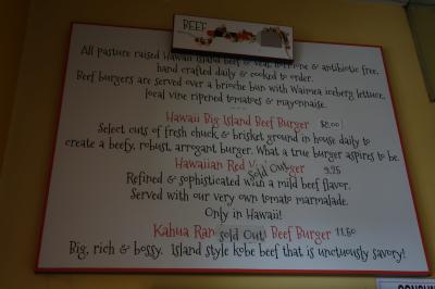ハワイ島の北の方のワイメアにある「パーカー・ランチ」という東京23区より広い牧場の、ショップやレストランの入った「パーカー・ランチ・センター」内にある小さなハンバーガー屋さんで、ハワイで牧草を食べて育った牛だけを使って、オーダーを受けてから肉を挽いてこねて焼いて作ってくれる(なので時間はかかる)、トッピングに凝ってるなどの小細工なしの、純粋に「肉、旨っ!!」という感動バーガーです。2014年に家族旅行でハワイ島に行った際に食べて感動し、その2年後にまた家族でハワイ島に行った際、2年間、ビレッジ・バーガーのことばかり考えていたので、空港でレンタカーを借りるや、ホテルを素通りしてビレッジ・バーガーに直行したくらいです(笑)。ハンバーグが、すごくシンプルに肉の味がして、幸せの味です。レタスとトマトが入ったのが基本バーガーです。細切りのフライドポテトも絶品です。1ドル追加でわさびマヨネーズとかトマトケイパーマヨネーズなど色々あるのに、2度ともがっついてオーダーしたため、備え付けのケチャップとマヨネーズで食べてしまいました(それも美味しいですが)。狭い店内では食べられないので、外のベンチで食べるか、パーカー・ランチ・センターのフードコートみたいなテーブルで食べます。