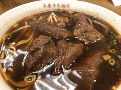 牛肉麺は、大きな牛肉の塊肉がごろごろと入っていて、よく煮込まれて、ほろほろと箸で崩せます。相当食べ応えがあります。スープも滋味深くて、体によさそうな味。辛い牛肉麺は、やや油ギッシュで、本当にお腹いっぱいになります。(なので、サイドメニューの小さなご飯みたいなのを頼めませんでした)台湾で色々牛肉麺を食べてみて、個人的には宜蘭の小さな屋台みたいなところで食べたのが一番好きでしたが、永康牛肉麺の牛肉のゴロゴロボリューム度合いは、一度は食べてみてほしいです。- 旅行時期
