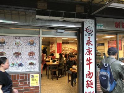 台北に留学していたことがある友人(日本人男子)が、「台北で最高の牛肉麺!」と叫んでいました。台北のグルメ・ストリート永康街で、メインストリートから少し脇に入ったところですが、行列ができていて、黄色い看板で、目立つお店です。友人(女性)と二人で台北に行った際、とりあえずホテルに着いて、真っ先にここに食べに行ってみました。