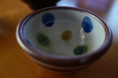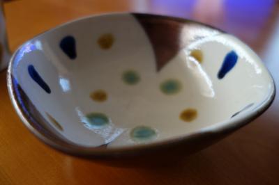 那覇で「やちむん」を買いたいなー、というとき、中心地の国際通りや市場から徒歩すぐの場所にある「壺屋やちむん通り」は店数などは小規模ですが、もろ観光客向けのおしゃれ系から人間国宝の作品を扱い本格的な店まで色々あって、各人のニーズに合わせてお店を探すことができます。やちむんは好きだけど、嗜好も価格も本格的なものには手の出ない典型的な観光客の私が迷いながら歩いていて、ふらりと入った小さなこちらのお店は、店主と思われる若い情熱的な陶芸作家の男性が、熱心に、やちむんへの情熱やこだわりを語ってくれて、観光客向けのあからさまなお土産としての手抜き作品への批判なども語りまくってくれて、挙句、那覇で観光客向けではない本当に美味しい沖縄そば屋まで情熱的に勧めてくれて、その情熱に打たれます。…なのに、典型的な観光客の私は、お兄さん渾身の「龍シリーズ」や「青シリーズ」ではなく、お兄さんが監修して観光客向けに作っている「ドット(水玉)シリーズ」を3点購入してしまいました。3点ともめちゃめちゃかわいくて、食器としても秀逸で、帰宅後ずっと大活躍です。やちむん通りの「観光客向けオンリー」的な店から「人間国宝の作品を扱う本格的オンリー」な店などある中、こちらは小さいながら本格的な作品を扱う一方、私のようなミーハーを締め出すことなく、まずはやちむん愛好への入り口としての役割も果たしてくれる、貴重なお店だと思いました。