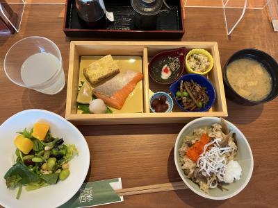 それだけで元が取れた気がしましたが、スタンダードダブルという部屋も、広くはないけど狭くて荷物も広げられないとかではなく、きちんと清掃されていて、あらさがし大王の私でも「あら」を発見できず、窓のところが和風テイストな障子になっているのも良い感じでした。朝食付きプランでしたが、朝食はメインがお弁当箱みたいに出てきて、和か洋か選べるうえ、それ以外のおかずやパン・ご飯・汁物・ドリンク・デザートはバイキングになっていて、気持ちもお腹もいっぱいになりました。地元の食材が豊富に揃っているのも楽しく、「琉球」や揚げたてのとり天、鶏飯、地元産のしらす・とびっこ・野菜、だご汁など、色々と楽しめました。今回の滞在については満点つけてもいいくらい、何も不満がなかったです。人気のホテルみたいなので、早めの予約が安心かもしれません。- 旅行時期