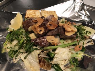 - 目の前の鉄板で焼いてくれる店は、それなりに高級感があり、テーブル席はミナミの夜景が見えて、接待などに便利です。