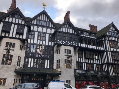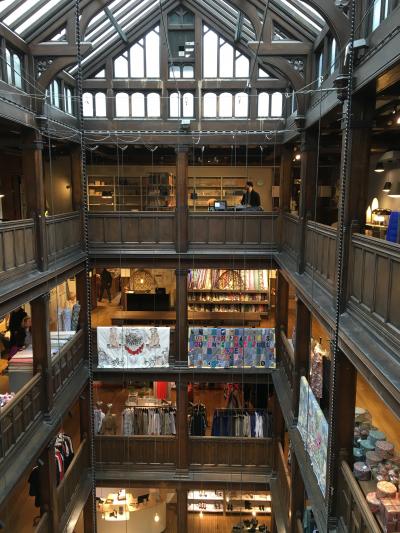 誰もが一度は見たことある、小さな花が散りばめられた布のデザイン「リバティ」。その総本山みたいな百貨店が、ロンドンのショッピングの中心地オックスフォード・サーカスにある、その名も「リバティ」です。建物はシェイクスピアの時代みたいな、チューダー様式というのか、とても古式ゆかしい文化財みたいな外観に、中に入っても、古いお城を歩いているようなギシギシ言う木の階段とか、真ん中が吹き抜けになって黒い柱がたくさん見える、とてもとても印象的な古式ゆかしい建築美…の中で売っているのが、結構とがった、最先端のエッジの利いた服やバッグやコスメがファッションショーみたいにカッコ良く展示されているアンビバレントな魅力。そしてもちろんリバティ柄がたくさん!布そのものも、すごい豊富な種類で売っているし、リバティ柄のスカーフやノートなどの文房具やポーチや布のくるみボタンや、もう、好きな人なら店ごと買って帰りたいくらいの品揃えて展開されていて、お値段がそれなりにするので、そうそうたくさん買って帰れなくて、選ぶのに悶絶すること必至です。見どころだらけの魅惑の百貨店なので、時間に余裕をもって、じっくり、のんびり見て回りたいお店です。