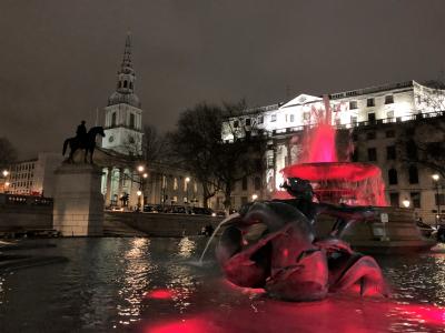 あと、広~い広場なので、しょっちゅう何かしらイベントをやっていて、イベント時にはすごい人だかりとなり、ニュースクルーがやって来たりします。広場の名前は、1805年にイギリス軍がナポレオンを撃退したトラファルガーの海戦に由来していて、広場にある塔みたいな棒の上にトラファルガーの海戦の英雄ネルソン提督がちょこんと立っています(上すぎて見にくいけど)。あと、三越百貨店の入り口にいるようなライオンの像や、毒々しい青色の鶏の像も有名みたいです(由来はわかりません)。噴水もあり、夜になると地味にライトアップされています。わざわざ行こうと思わなくても、ロンドン観光中に絶対一度は通りがかるので、まあそんなものか…くらいで大丈夫かと思います。- 旅行時期