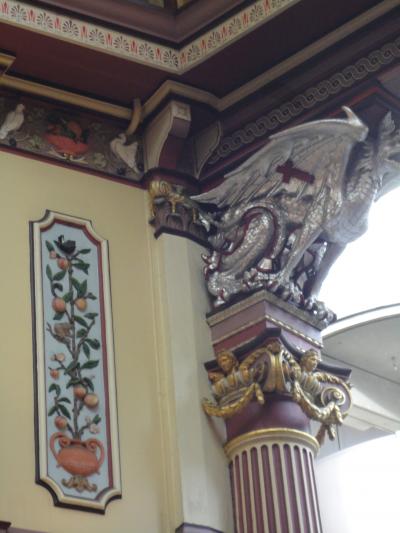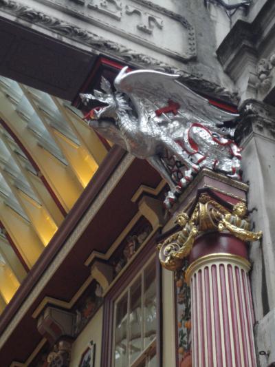 ハリー・ポッターに燃えていた親戚の子供のためにロケ地の写真を撮ろうと訪れたレドンホール・マーケットは、アーケード付のクラシカルな商店街で、アーケードや壁、柱などが非常に美しく豪華でクラシカルで、ロケ地でなくても足を運ぶ価値のあるマーケットでした。神は細部に宿る、という言葉がぴったりの美しい建築です。お店はお酒が楽しめる飲食店が多く、近くのシティ(金融街)で働くエリートサラリーマンたちが、なぜか昼間から大勢立ち飲みをしていて、とても賑わっていました。で、美味しそうな飲食店が多かったです。ハリー・ポッターのロケ地は、商店街の本通り的なところから一筋脇に入ったところですが、真っ青な入り口が目立つので、見つけるのは簡単です。映画ではここがダイアゴン横丁の漏れ鍋というところだそうです。