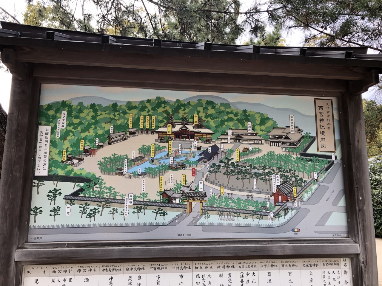 毎年1月に「福男選び」のニュースで、早朝、開門と同時に多くの若い男子がわーっと走っていく映像を見たことがある方も多いと思いますが、その会場の神社です。と言っても関西人にとっては福男選びなんてどうでもよくて、商売の神様・えべっさんの総本社で、1月の10日えびすの頃には大変な人で賑わいます。広い境内に(コロナ下では自粛していましたが)たくさんの屋台が出て、お祭りムード満載で、商売繁盛笹持ってこい♪の掛け声で、その場にいるだけでパワーチャージされます。そんな商売の神様の顔以外にも、平安時代に出来たと言われる歴史の長い神社で、しかも大変広いので、境内には色々と見どころがあり、散策していて飽きません。境内にさらに小さな神社が10以上あったり、伊勢神宮までお参りに行けない人のために(たぶん昔の話)、伊勢神宮の方向にお参りするコーナーがあったり(今も行列になる。笑)、酒どころ西宮だけにお酒の神様の小さな神社があったり、お団子を食べられるお茶屋も境内にあって、なごみます。木々も多いので、都会の中の森林浴の場所としてもお勧めです。周辺に美味しいお店もたくさんあります。