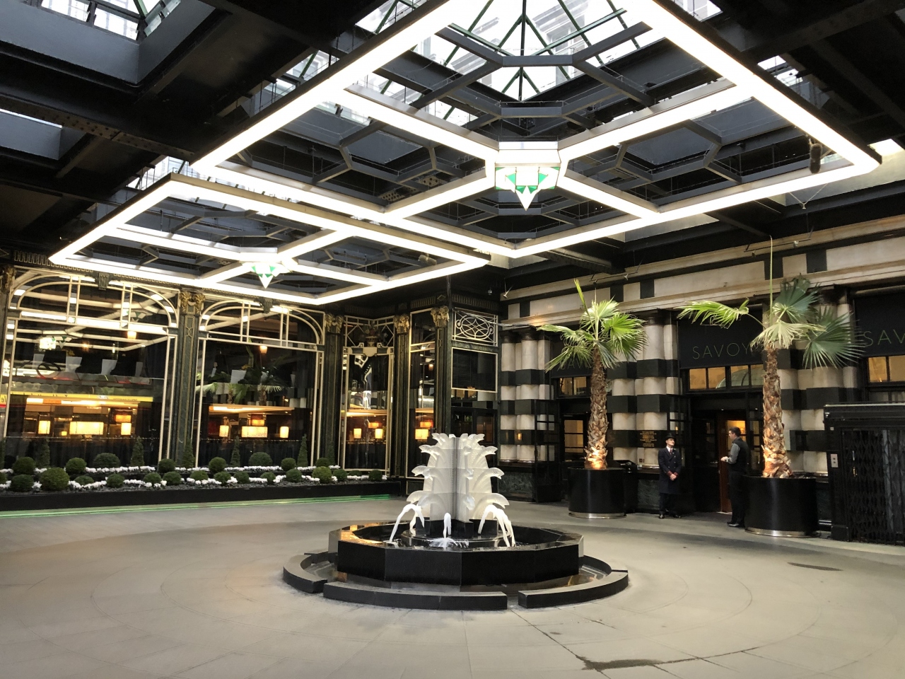 ストランド通りからエントランスの方へのアプローチを歩いていくと、「SAVOY」という大きな文字が銀色の屋根に書いてあるだけで、全ての歴史や映画やドラマで見た時の記憶がわーっと押し寄せて、私はいつも胸いっぱいになります。とても特別感のあるホテルです。いつか泊まってみたい…