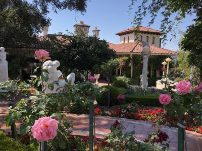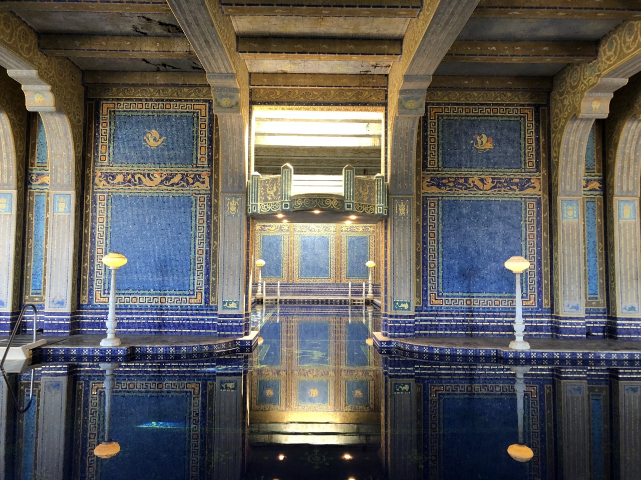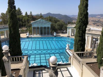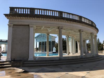 カリフォルニアの海岸の、ロサンゼルスとサンフランシスコの間辺りにあるサンシメオンという街の、海岸から少し内陸に入った山丸ごと(目視で確認した感じでは山2つ分くらい)を自宅として所有していた「新聞王ハースト」ことウィリアム・ランドルフ・ハーストの屋敷です。ハーストは、オーソン・ウェルズの映画「市民ケーン」のモデルとして有名な20世紀前半のメディア王で大富豪で、ハリウッド映画草創期のスタ―たちとの交流も深く、「ハースト・キャッスル(ハースト城)」という名の通りお城みたいな大豪邸に、チャップリンやクラーク・ゲーブル、グレタ・ガルボなど多数のハリウッドスターが毎日のように訪れて滞在していた「黄金期の聖林の夢のあと」ぶりが垣間見られて、背筋ぞくぞくです。山のふもとに入場券を買うところがあり、中に入るとカフェテリアやお土産屋が並び、そこからバスに乗って、山頂のお屋敷に向かいます。屋敷までは細い山道をくねくね上がっていくので、バスで15分ほどかかりました。かつては途中の山のところに動物園みたいに猛獣などが放し飼いにされていたそうです。お屋敷は当時としては珍しい女性建築家のジュリア・モーガンの作品ですが、たぶんハーストさんの趣味で、古代ローマや中世お城建築をそのまま移築したみたいな、多くのパーツをヨーロッパから取り寄せて、内装だけでも20年ほどかけて整えたというヨーロッパ趣味全開で、女性建築家の仕事!みたいな観点で見る感じではなかったです。たとえば屋外と室内2つあるプールはどちらも古代ローマ風で遺跡みたいだし、室内インテリアもヨーロッパのお城や教会みたいで、感心するよりアメリカ人のヨーロッパコンプレックスに悲しくなりました(多くの昔のアメリカのお金持ちの屋敷はどこも、ヨーロッパへの憧れ全開すぎて、いつも悲しくなります)。とはいえ、こんなにお金と手間暇をかけた、しかも山丸ごと2個分くらいの規模の屋敷は、今では絶対造れないので、わざわざ足を延ばして見る価値は十二分にあり、ここを訪れたハリウッドスターや政治家などセレブの面子を見ているだけでくらくらするほど華麗な世界です。映画ファンなら、「市民ケーン」への想像力と、オールド・ハリウッドへの憧れと、ダブル・ファンタジーでめまいがすると思います。建築好き、お城好き、歴史好き、観光好きな方にもお勧めです。