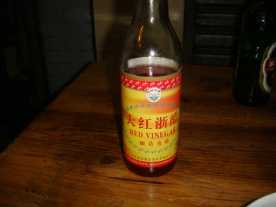 これは、食堂で借りた紅酢。匂いは、日本の米酢に似てます。食べても食べて...