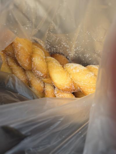 「クァベギ」というツイストドーナツ3つで2000ウォン。安い!そしてう...