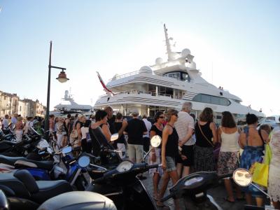 何十億円(それ以上?)もするクルーザー。昼間は船でしか行けない場所で過...