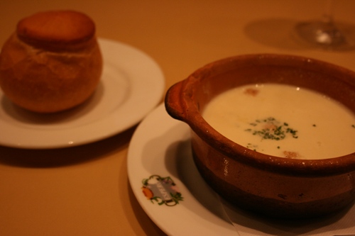 まずは、ホタテのクリームスープ、ちょっとこれは味が薄くてイマイチ。