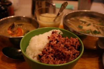 ごはん、小鉢、酸辣湯(サンラータン)餃子、デザート付で900円。