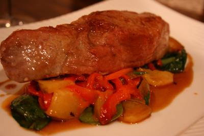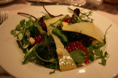 サラダ、牛のシャンピニオンソース、お魚のムニエルやフラン、