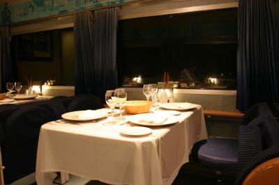 このクラスは自動的に?ディナーもついていて、食堂車へ。