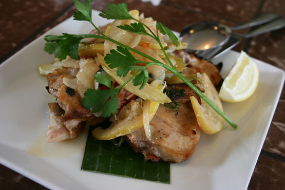 鴨肉のコンフィ西湘地域朝ドレの冬野菜のグリエ添え 1,600円。