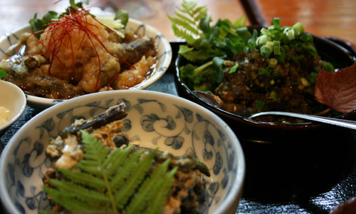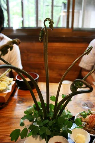 夢わらび定食は、何と、大きなわらびが剣山に刺さってる!!(笑)