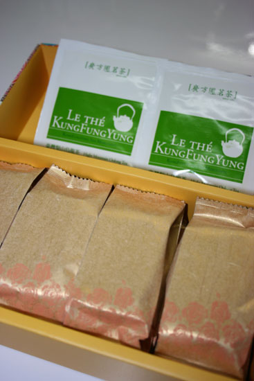 お店に入ると、試食でまるまる一個のパイナップルケーキとお茶を出してくれます。